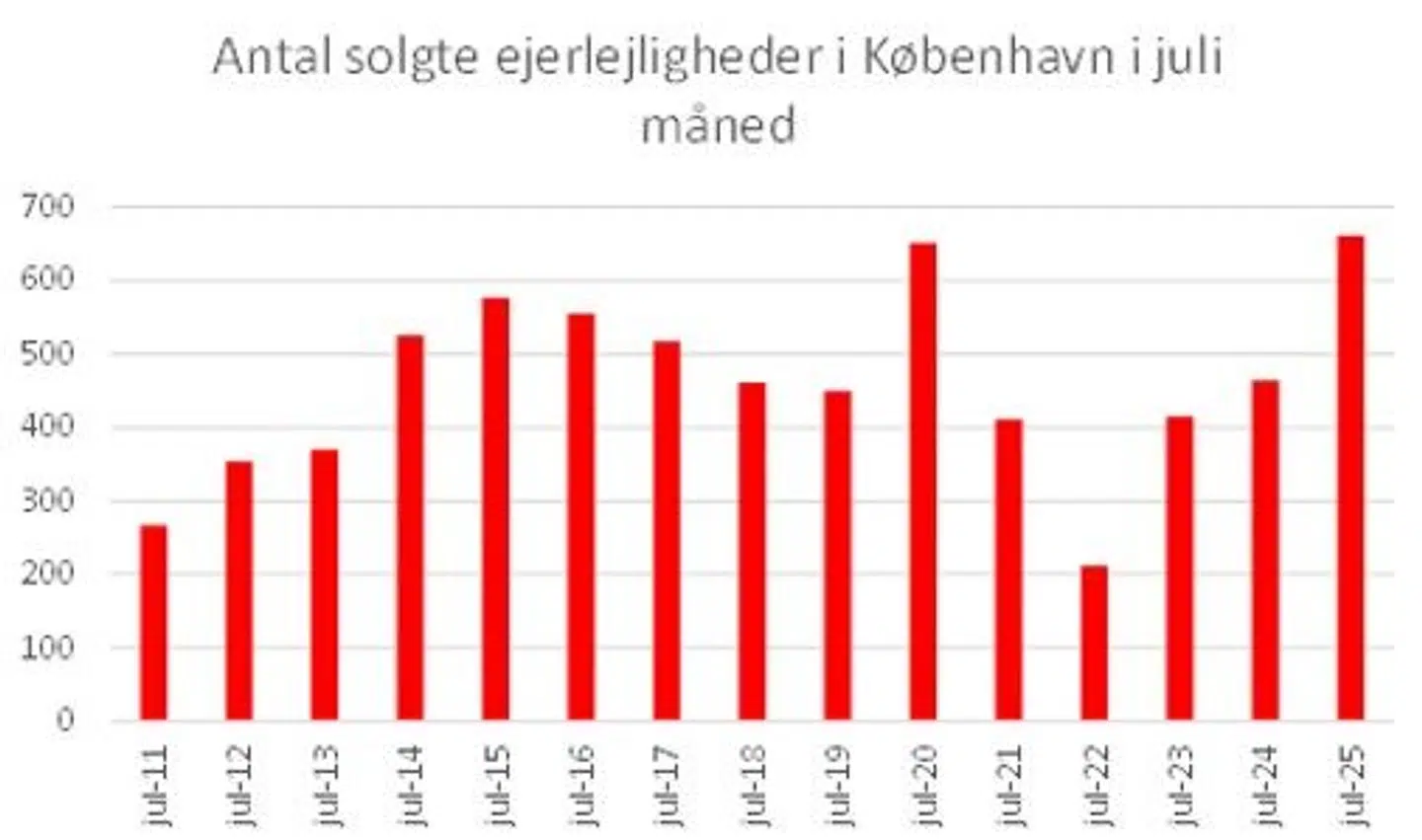 Aldrig før er der blevet solgt så mange ejerlejligheder i Københavns Kommune i en juli-måned end i den netop forgangne måned.