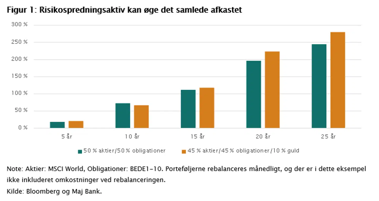 Langt de fleste private investorer har både aktier og obligationer i deres investeringsportefølje. Aktier og obligationer er de to vigtigste byggeklodser i en veldiversificeret portefølje, men mange investorer kan faktisk få et bedre risikojusteret afkast ved at inkludere et risikospredningsaktiv i deres portefølje. Et risikospredningsaktiv er en investering, som typisk klarer det godt, når aktier klarer det dårligt. Risikospredningsaktiver minimerer porteføljens samlede risiko, og samtidig kan det også give et bedre afkast, hvis man løbende rebalancerer sin portefølje.