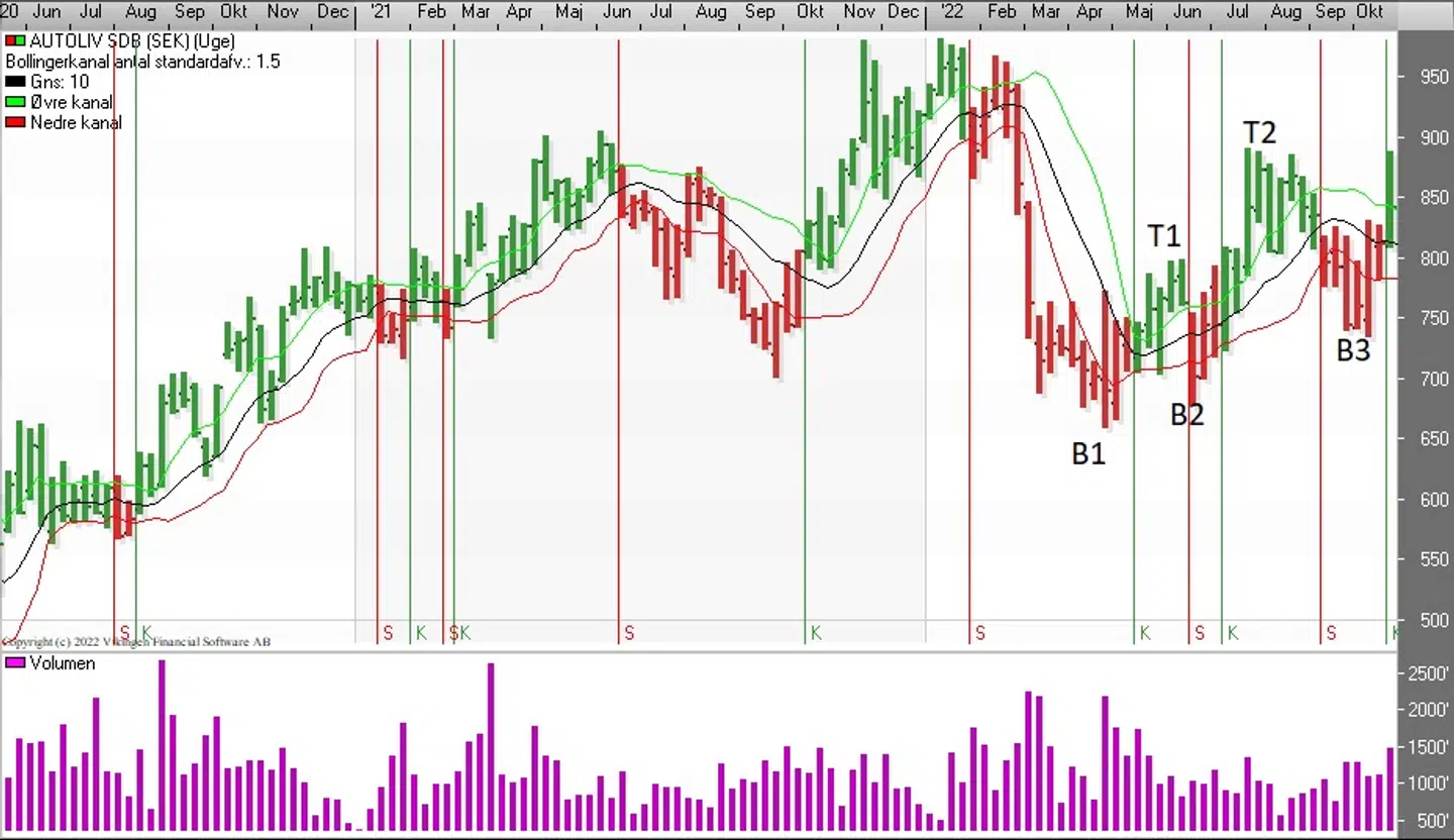 Autoliv-aktien fandt en bund i niveauet april i niveauet 660-670, og siden har kursen været i en stigende tendens.