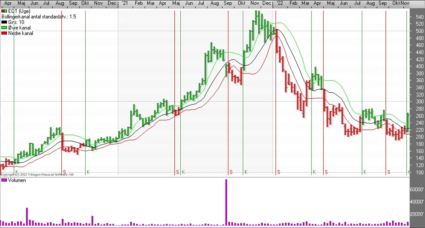 EQT har etableret købssignal i Bollingerkanalen for 13 dage siden.