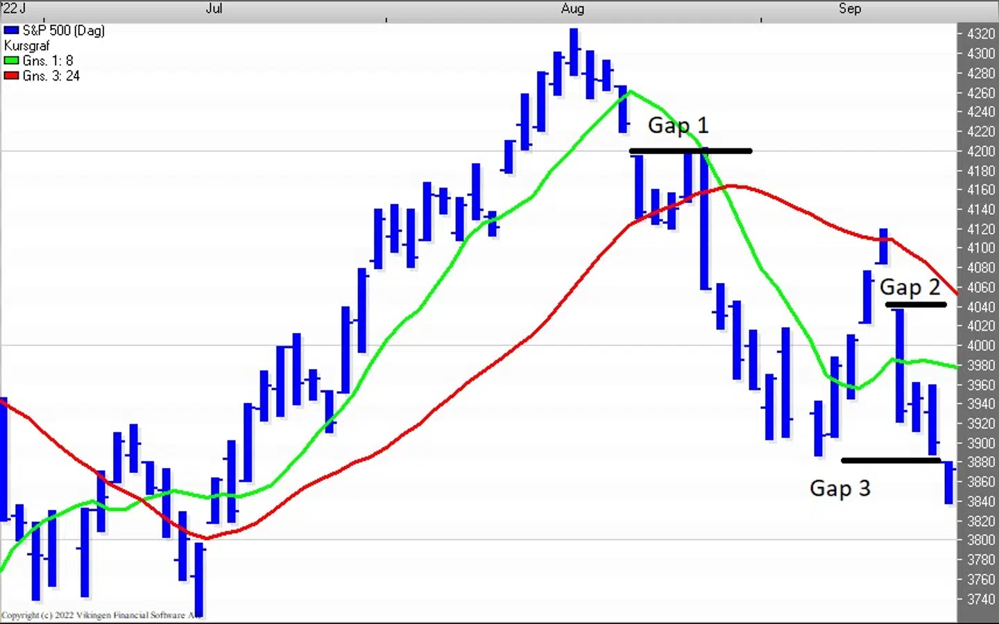 Det første var i midten af august i niveauet 4195,08-4218,70 og andet gap var i september i niveauet 4037,12- 4083,67 og tredje og sidste gap var fra torsdag til fredag i niveauet 3880,95-3888,28.