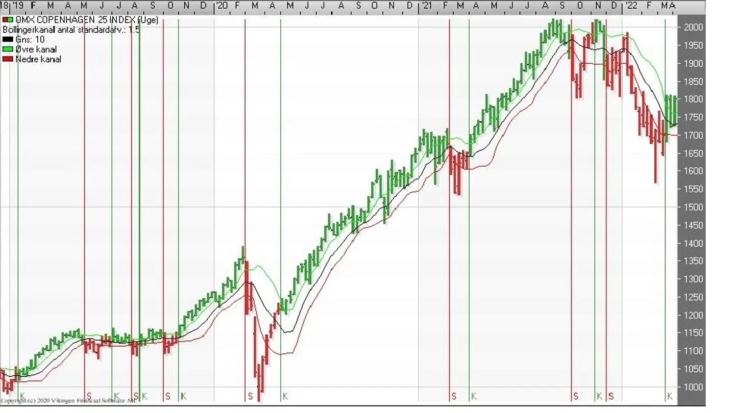 På dagsniveauet har Bollingerkanalen igen etableret et købssignal, men har vekslet meget mellem køb og salg siden bunden i februar i niveauet 1567. Fredag lukkede indekset i 1802.