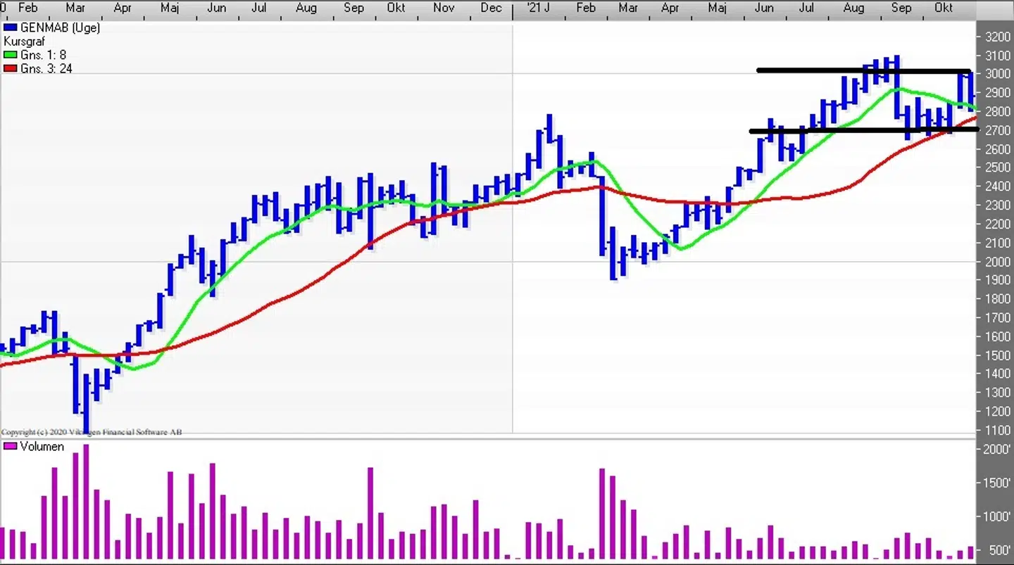 Lars Persson ejer aktier i Genmab og Kahoot. Graferne er fra analyseprogrammet Vikingen.