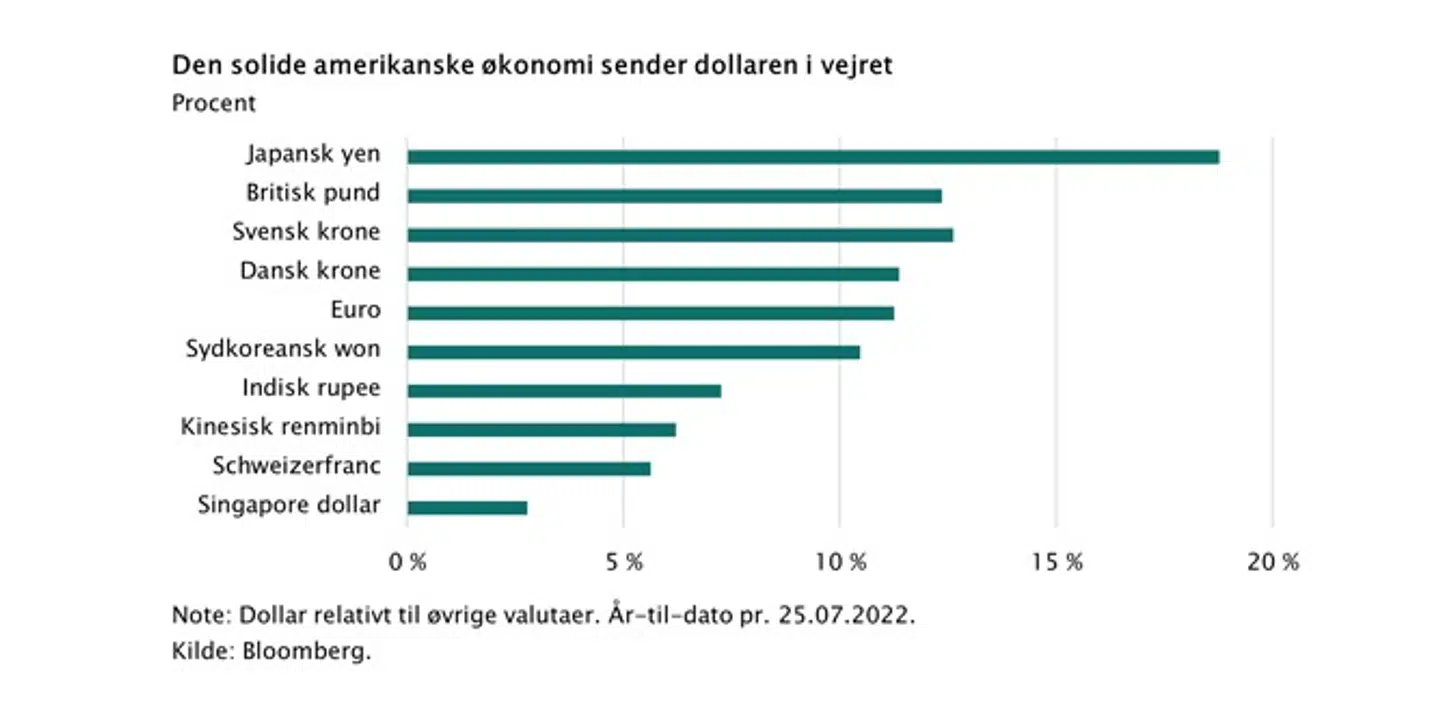 Aktiemarkederne er faldet med ca. 10 pct. målt i dollar, men med stor variation mellem sektorer og lande. Hen over sommeren er det blevet tydeligt, at de store aktiekursfald i månederne marts-juni er afløst af en fremgang, som skyldes, at det først og fremmest er en europæisk energikrise, der udspiller sig, kombineret med konsekvenserne af en amerikansk rentestigning og en kinesisk covid-nedlukning. Dette lægger et naturligt låg på rentestigningen.