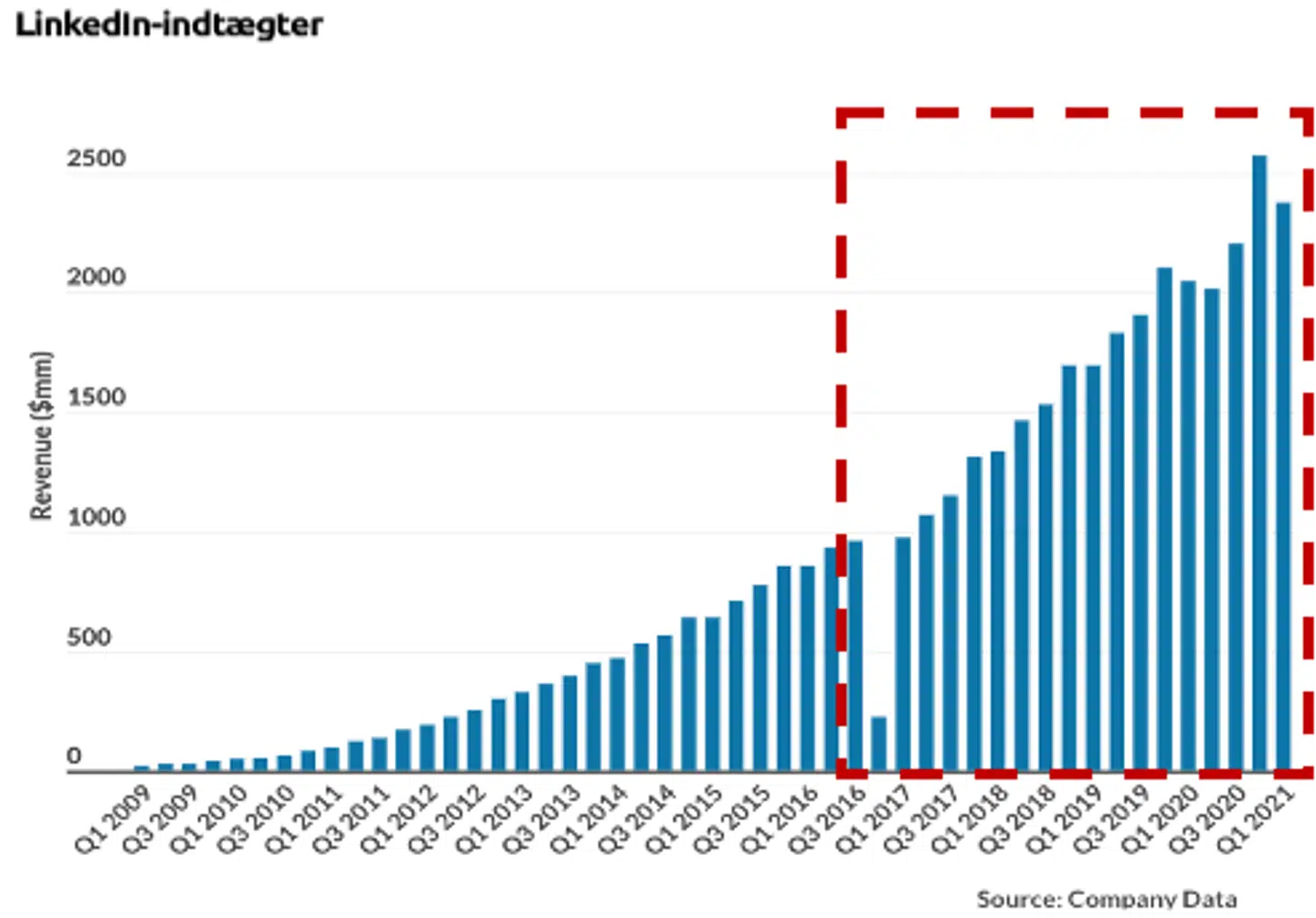 LinkedIn blev opkøbt af Microsoft tilbage i juni 2016 med en præmie til aktionærerne på +50 pct. (hvilket faktisk er en høj præmie). Men ikke alle aktionærer havde nået at få kapitaliseret på deres investering i LinkedIn.