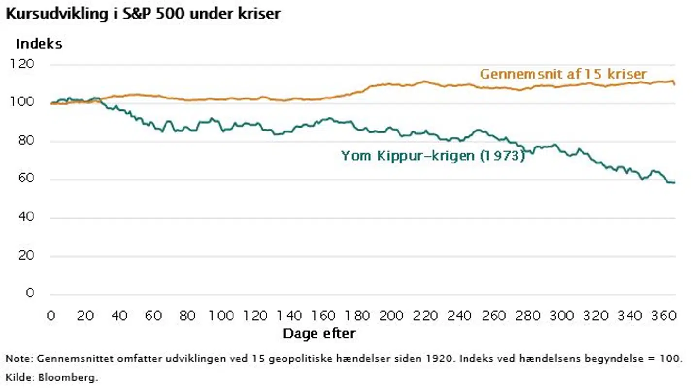 Kun i få tilfælde er markedet for alvor blevet ramt. En af de mest voldsomme udviklinger for aktierne kom efter YomKippur-krigen i 1973, der blev startskuddet til oliekrisen. Her steg olieprisen til det firedobbelte.