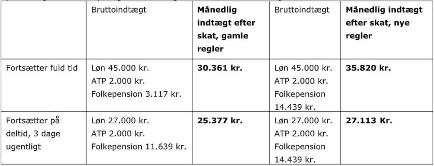 Folkepensionen udgør i dag 173.368 kr. årligt før skat for enlige og 127.844 kr., når man er i et parforhold. De nye regler betyder, at man fremadrettet frit kan arbejde og tjene så meget man vil, uden længere at skulle bekymre sig om, hvorvidtindtægten ødelægger enten ens egen, eller partnerens, folkepension.