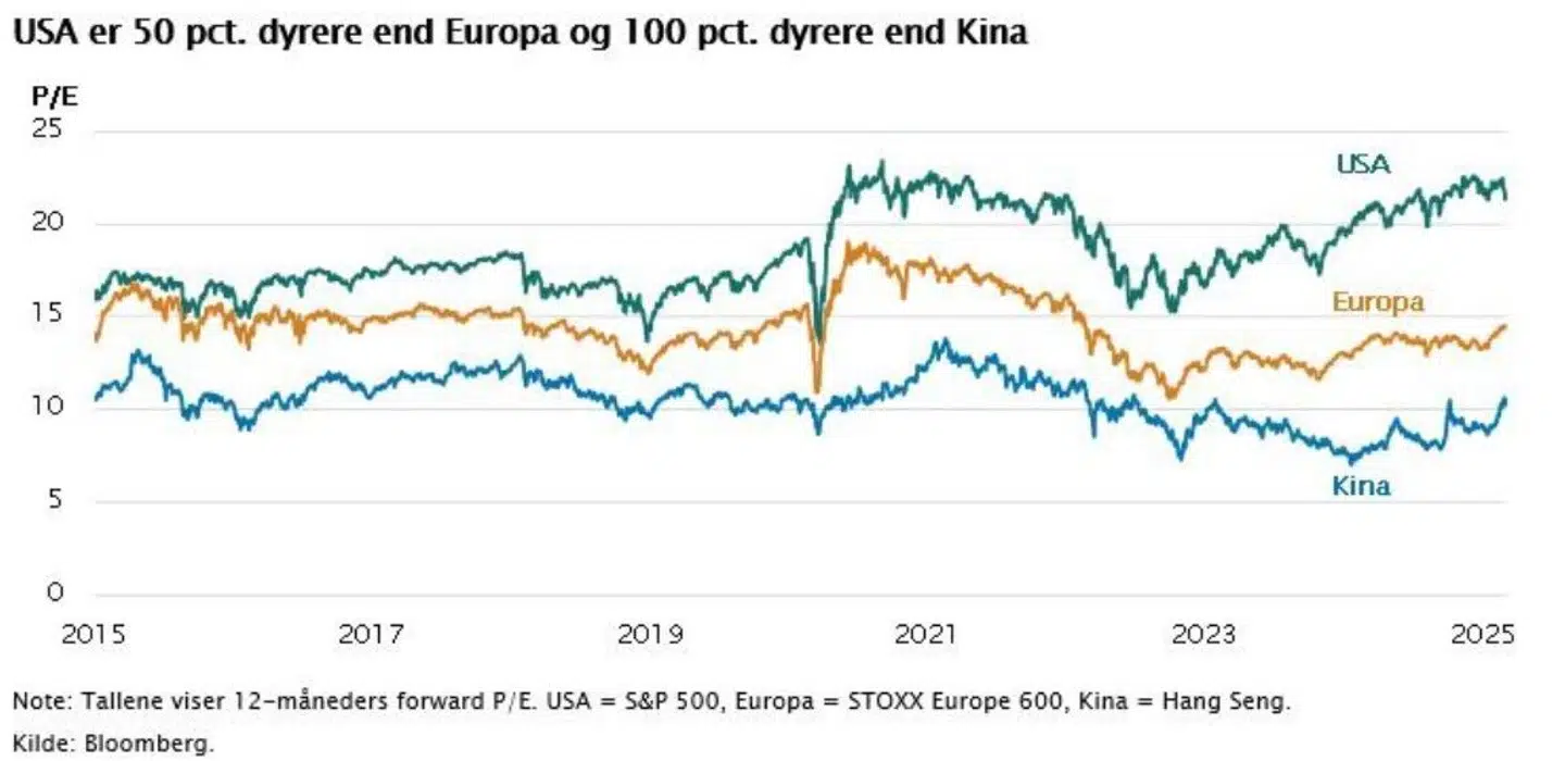 Amerikanske aktier har i 2025 ikke kunnet følge med de europæiske og kinesiske.