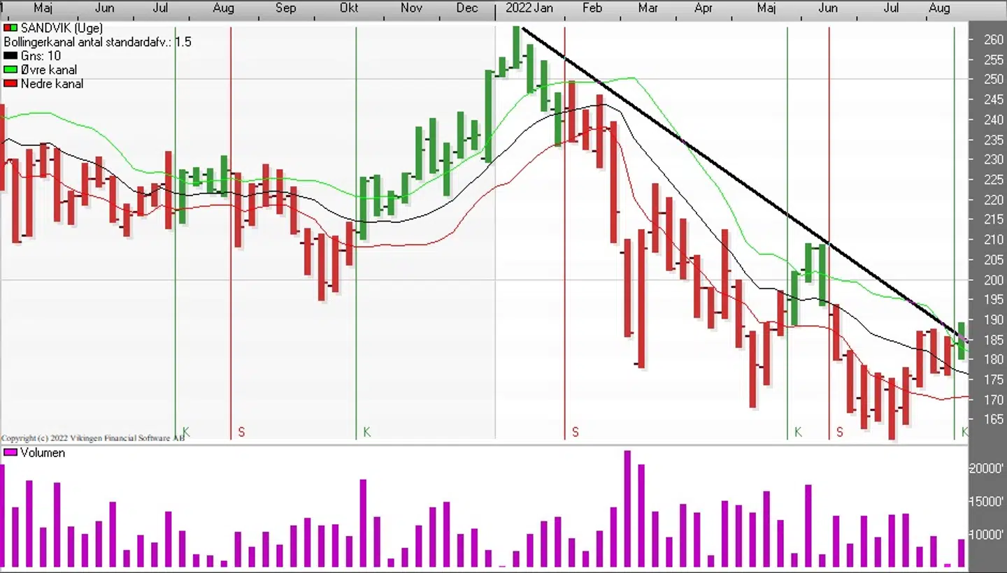 På dagsniveauet er der købssignal i Bollingerkanalen og det har stået på siden midten af juli i Sandvik-aktien.