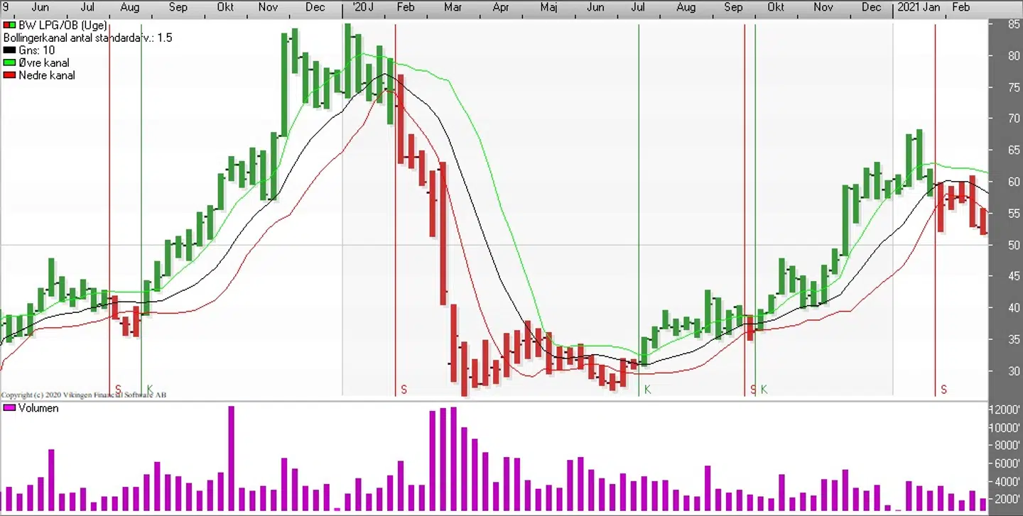 BW-aktien toppede i midten af januar i kursniveauet 68 og i fredags lukkede aktien i 51.85. Aktien er i salg både på dags- og ugeniveauet. Faldet fredag betyder, at der blev etableret et ”gap” i niveauet.