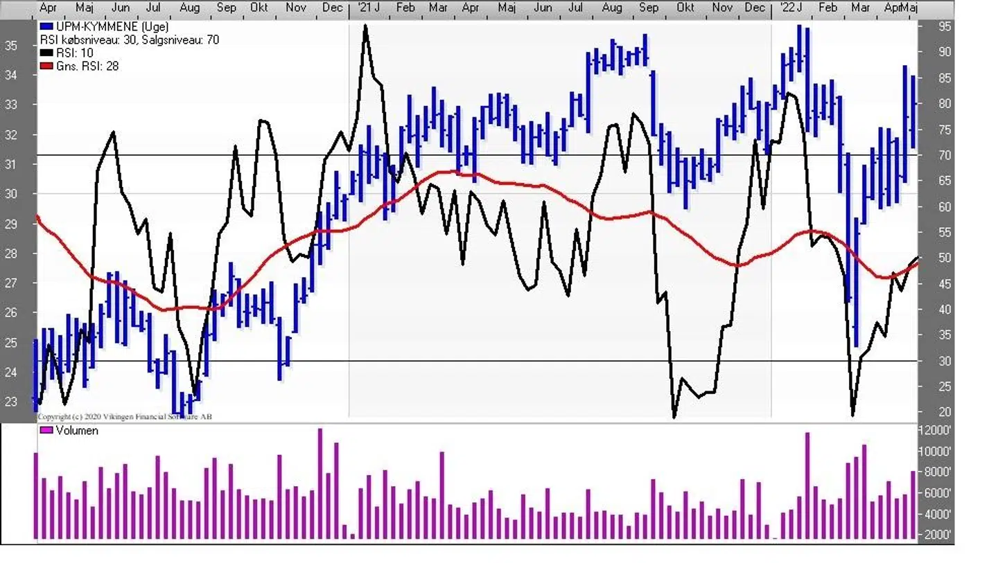 På dagsniveauet har Bollingerkanalen etableret et købssignal i begyndelsen af april for UPM - kymmene-aktien.