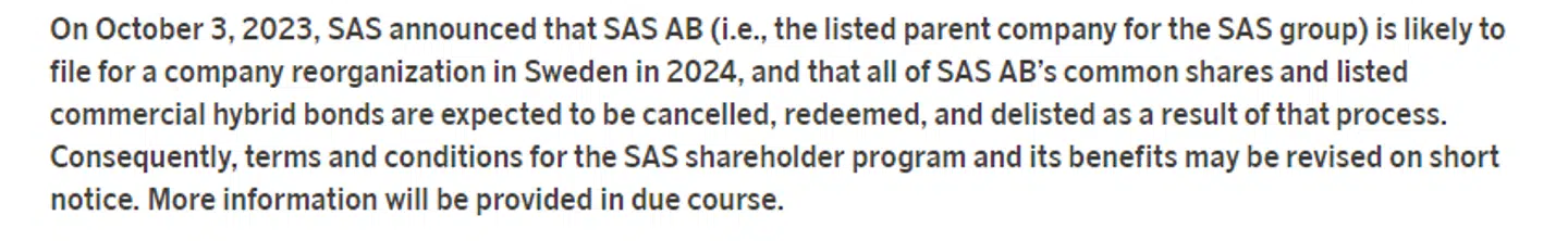 »Hvis du derfor har købt dig til en fin titel igennem aktier, kan det være en kort fornøjelse og en stakke frist, hvis SAS beslutter at ændre den erhvervede status med kort varsel,« forklarer han.