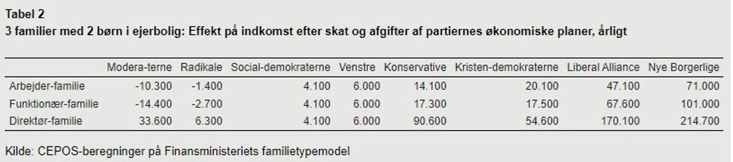 Partiernes rangering ændres dog en anelse, når man kigger på direktørfamilierne, som tjener knap 2 mio. kr. årligt.