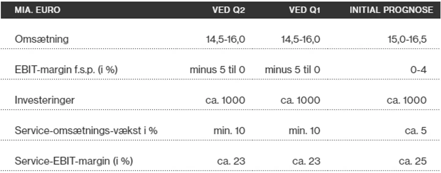 * Driftsresultatet, EBIT, før særlige poster viser et underskud på 182 mio. euro. Marginen faldt dermed til minus 5,5 pct. fra plus 2,7 pct. sidste år. Der var ventet en negativ margin på 4,1 pct. af analytikerne.