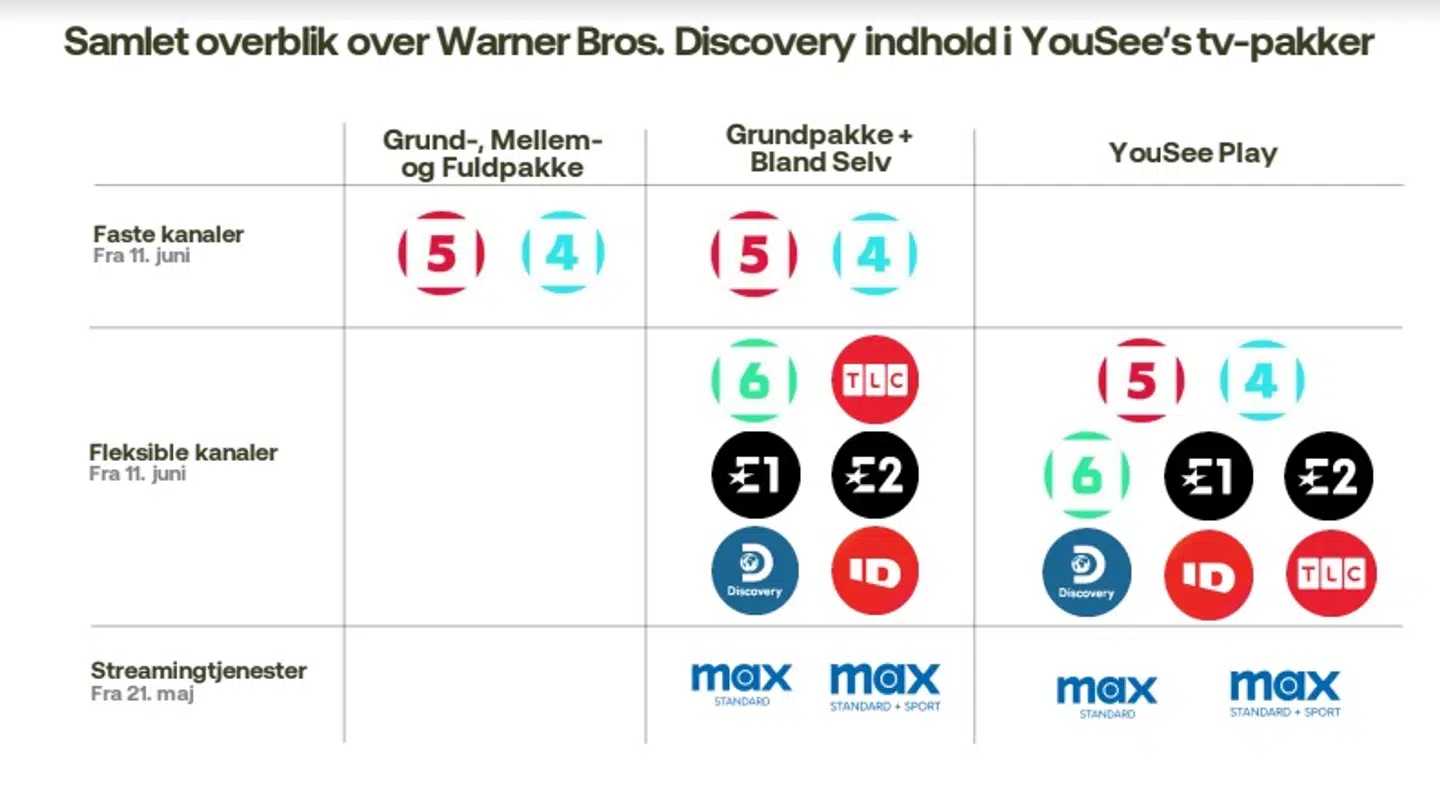 Yousee og Warner Bros. Discovery melder nemlig tirsdag morgen ud, at otte tv-kanaler nu vender tilbage hos Yousee.