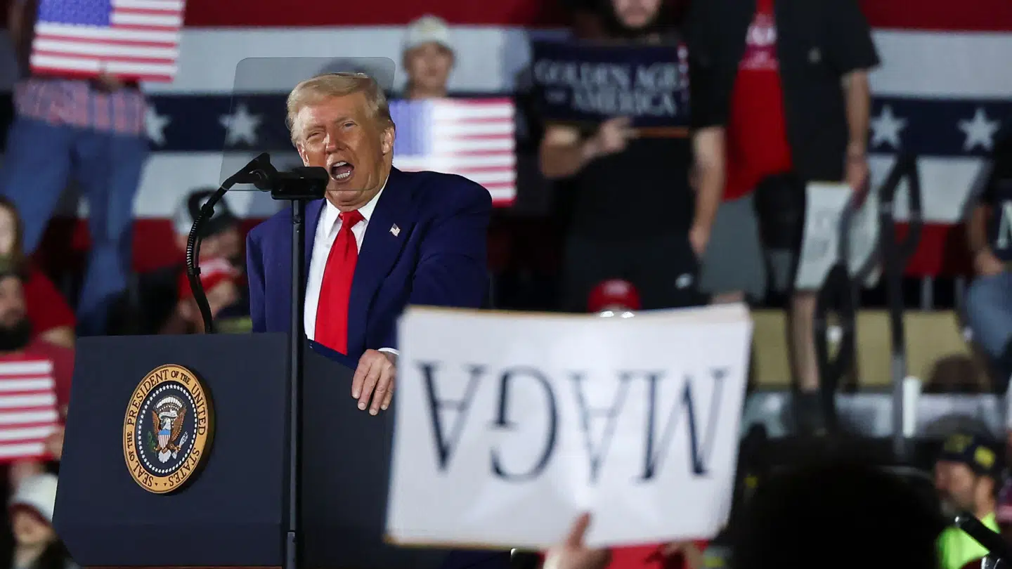 Denne gang til et vælgermøde i Michigan, hvor Trump markerede sine første 100 dage tilbage i Det Hvide Hus. Det skriver Bloomberg.