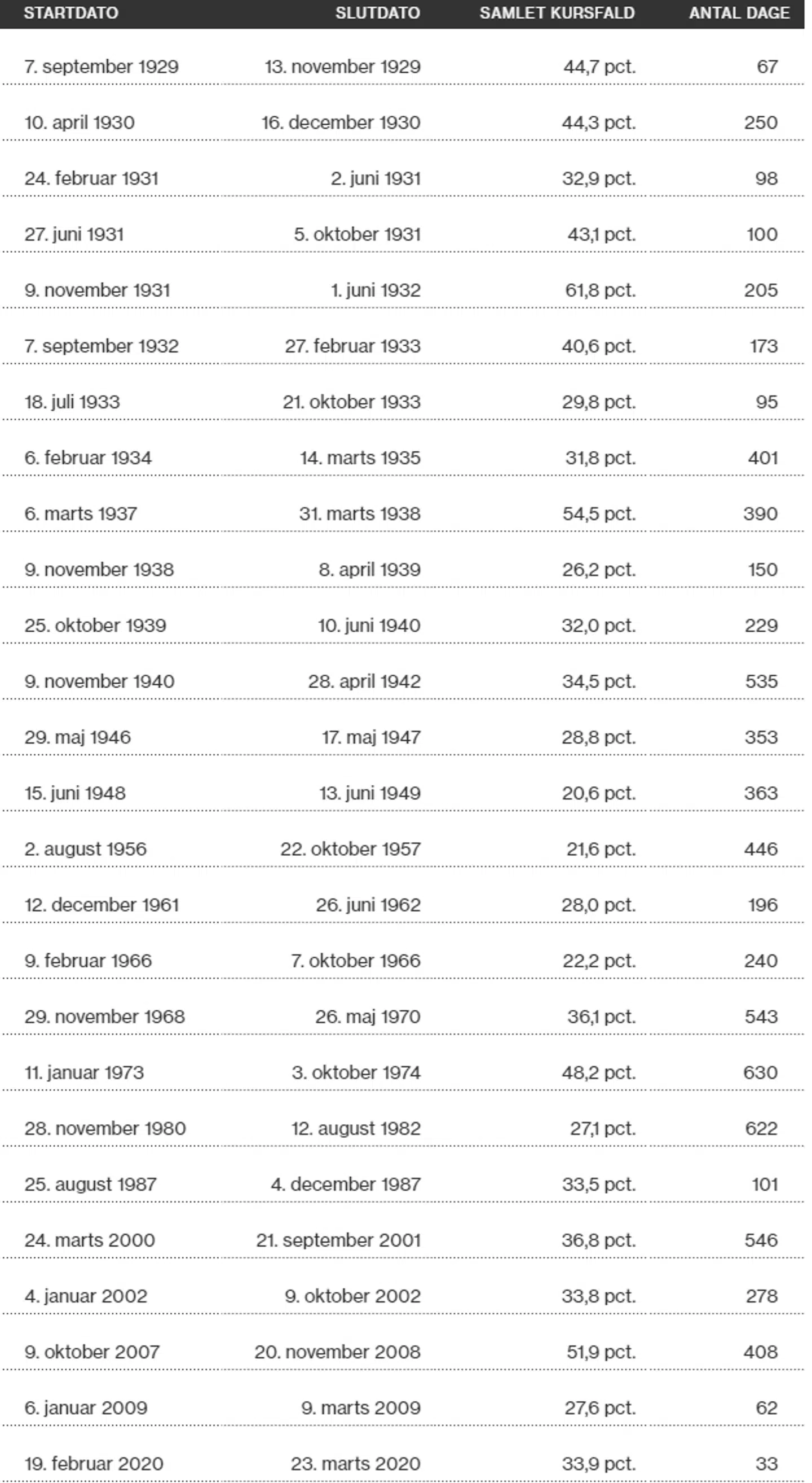 Siden 1928 har der været 26 bjørnemarkeder i S&P 500-indekset